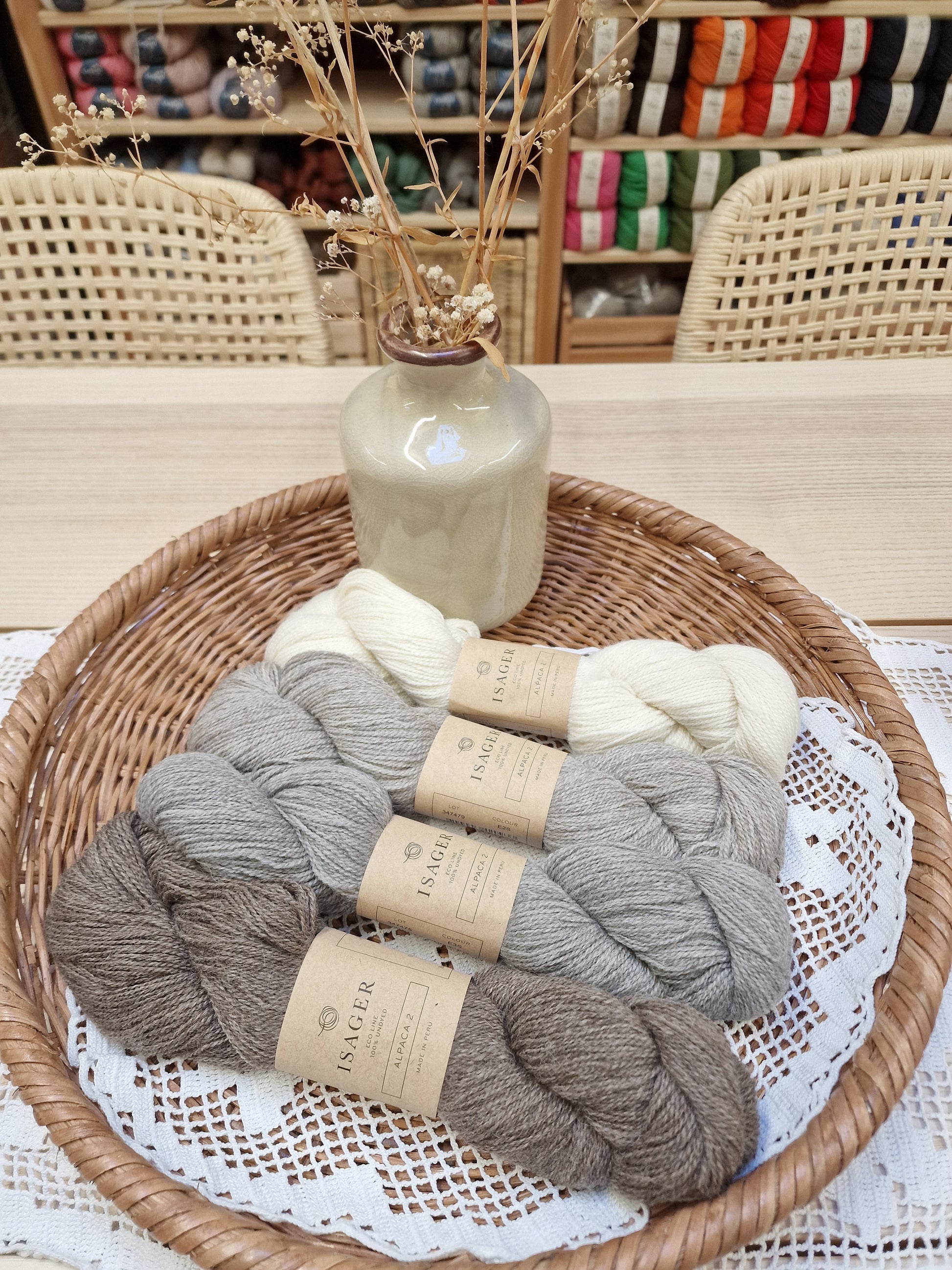Isager Alpaca 2 is a two-ply yarn that contains 50% wool and 50% Alpaca. It is characterized by being soft, and it is very suitable for baby clothes.