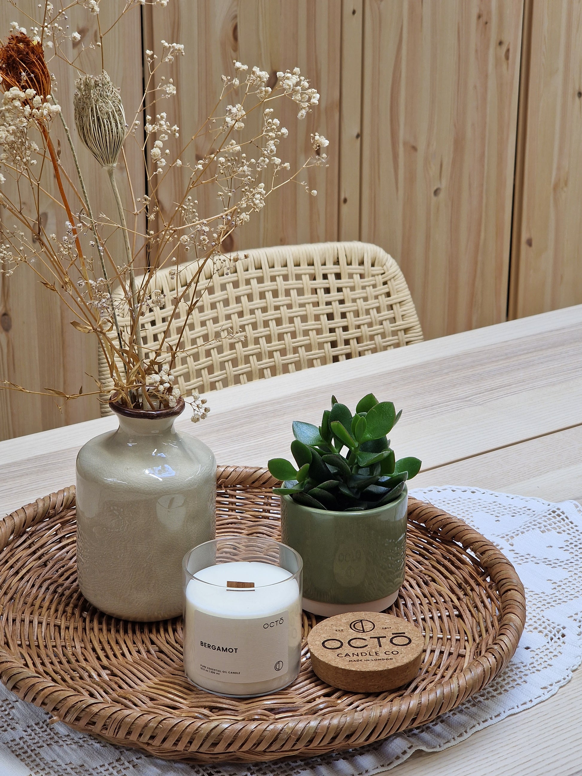 Octo candles are 100% natural and 100% vegan, made with soy wax and blended with pure essential oils. There is no synthetic or nasty in them and that is the reason why I love them so much and why I wanted them in my little showroom.